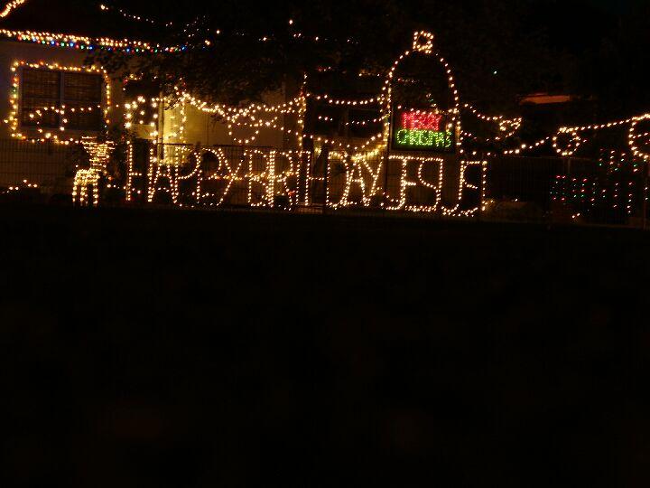 Happy Birthday Jesus - eines von vielen schön geschmückten Häusern